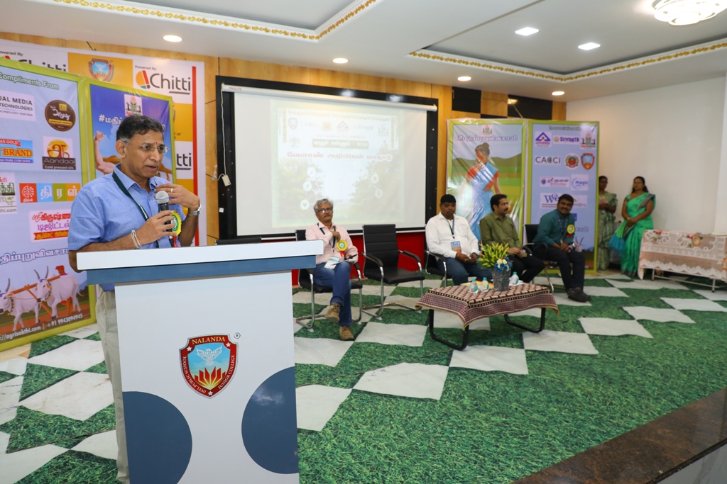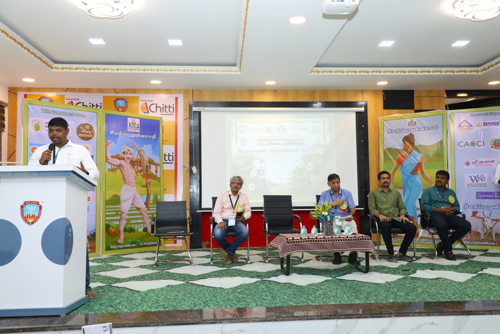 கிருஷ்ணகிரி: அக்ரிசக்தி ஒருங்கிணைத்து நடத்திய வானும் மண்ணும் – 2024 வேளாண் அறிவியல் மாநாடு ஜீலை 27ம் தேதி (நேற்று) கிருஷ்ணகிரியில் உள்ள நாளந்தா சிபிஎஸ்இ சர்வதேசப் பள்ளியில் காலை 10 மணி முதல் மாலை 6 மணி வரை நடைபெற்றது. இம்மாநாட்டின் துவக்க விழாவில் சிறப்பு விருந்தினராக பங்கேற்றுப் பேசிய பன்னாட்டு உணவுக் கொள்கை ஆராய்ச்சி நிறுவனத்தின் (IFPRI) திறன் மேம்படுத்துதல் பிரிவின் தலைவர் மற்றும் மூத்த விஞ்ஞானி முனைவர் சுரேஷ் பாபு அவர்கள், தமிழக விவசாயிகள் காலநிலை மாற்றத்தை எவ்வாறு கையாள வேண்டும், வேளாண்மையில் என்னென்ன உத்திகளை பின்பற்றி கார்பன் உமிழ்வைக் குறைக்கலாம் என்று எடுத்துரைத்தார்.