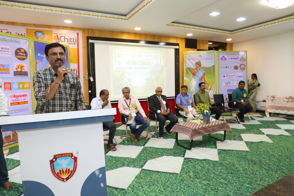 அடுத்ததாக வாழ்த்துரை வழங்கிய கோவையில் உள்ள தமிழ்நாடு வேளாண்மைப் பல்கலைக்கழகத்தின் வேளாண்மை மற்றும் ஊரக மேம்பாட்டு இயக்ககத்தின் இயக்குநர் முனைவர் சுரேஷ் குமார் அவர்கள், தமிழ்நாட்டில் கார்பன் வரவு சந்தைக்கான வாய்ப்புகள் மற்றும் சவால்கள், தமிழ்நாடு வேளாண்மைப் பல்கலைக்கழகத்தின் ஆராய்ச்சிப் பணிகள் குறித்து உரையாற்றினார். அடுத்ததாக கிருஷ்ணகிரி மாவட்ட தொழில் மைய மேலாளர் திரு.பிரசன்னா அவர்கள் பேசுகையில் புதிய தொழில்முனைவோர்களை ஊக்குவிக்கவும், அவர்களுக்கு தகுந்த வழிகாட்டுதல்கள வழங்கவும் கிருஷ்ணகிரி மாவட்ட தொழில் மையம் தயாராக இருப்பதாக தெரிவித்தார்.